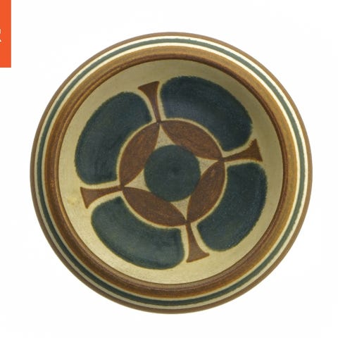 Keramik skål/fad, Michael Andersen Bornholm, Keramisk fad/skål i flotte grønlige nuancer, med et særpræget mønster der sjældent er set.