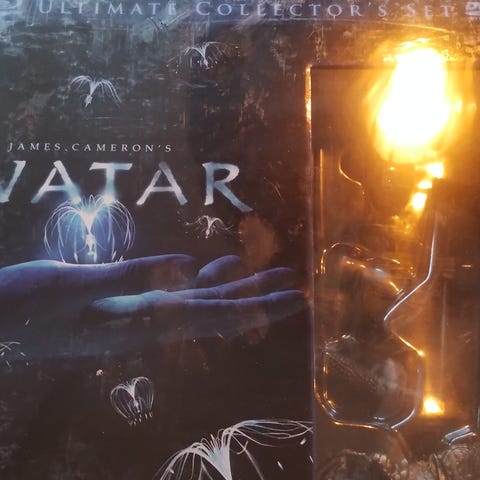 James Cameron Avatar Ultimate Collector's Set indeholder en 6-disc samling med film og ekstramateriale. Sættet inkluderer 3 Blu-ray discs og 3 DVD discs samt en samlerfigur af Jake Sully. Produktet er i en specialudgave med ekstra indhold og samlerobjekt. inkl. en AVATAR overlevelse bog. sender gerne på køberens regning.