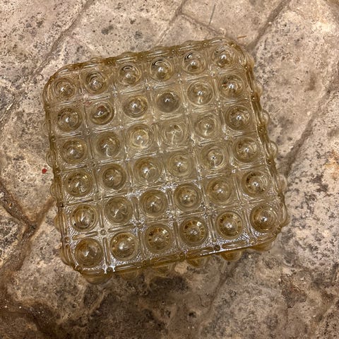 Vintage E.S. Horn lampeskærm i rav farvet glas. Dansk design fra 1970erne.