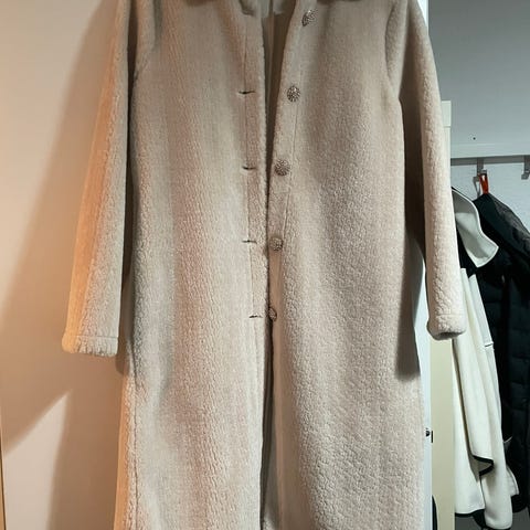 Super flot frakke i hørblanding med foer. Den kan ikke lukkes.