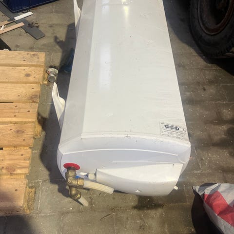 Vaillant varmtvandsbeholder samt nyere Grundfos Conlift kondensatpumpe sælges da vi er gået over til fjernvarme. Der forekommer rust på bagsiden som det fremgår af billederne. Så vidt jeg kan se på serienummeret fra fyret det er brugt sammen med er det produceret i 2008. Vi har ikke haft nogle problemer med det og det virkede fint da det blev taget ned. Kondensatpumpen er relativ ny, men der mangler en kobling/adapter.
