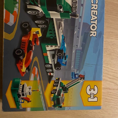 LEGO Creator 3in1 byggesæt med temaet lastbil med trailer og racerbiler.