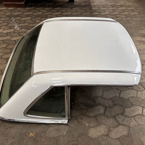 Hardtop til renovering. Adskilt men komplet. Skal males samt have en ny himmel. Gammel himmel forefindes.