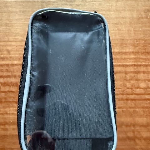 Ubrugt brun og rød cykeltaske i stof og læder