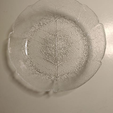 Skålen er lavet af hærdet glas med et unikt askebladsdesign,