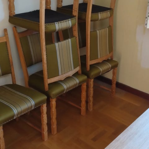 To stole i afsyret eg fra hjem uden røg og dyr, super fin stand, en lille fejl i stoffet på det ene ryglæn, 400 kr Per stykke