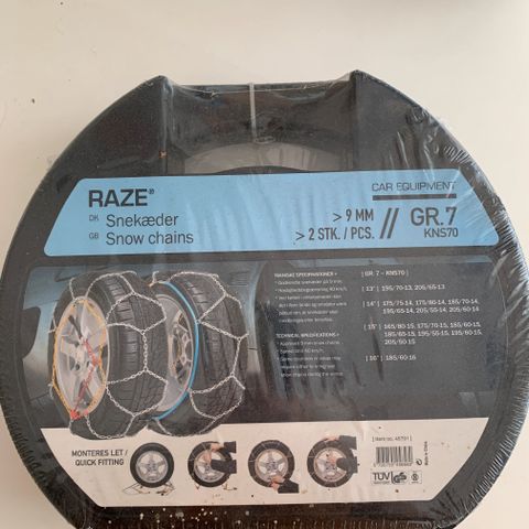 Raze Snekæder. Brugt 1 gang i Norge. Sælges pga. ny bil.
