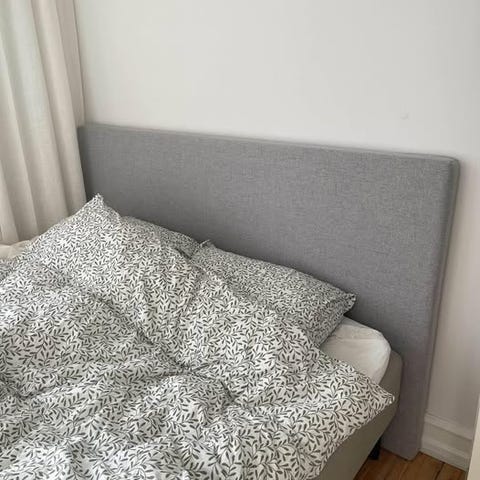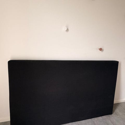 Sengegavl fra Bedre Nætter. Væghængt gavl i sort. 180x108x8 cm. Købt for 3 år siden, brugt i 1,5 år. I fin stand. Ubrugte lister til montering medfølger. Nypris 2999 kr.