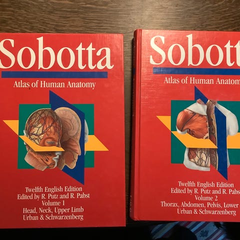 Sobotta Anatomi Lærebøger sæt bestående af flere bind.