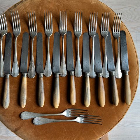 Sælges samlet. Jeg har også 6 franske gafler og skeer (se anden annonce). Prisen er for 6 stk.