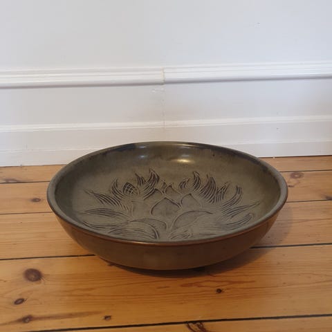 Klassisk organisk form og varm brun glasur med spil i overfladen, der gør den særligt dekorativ både som brugsting og som samlerobjekt.