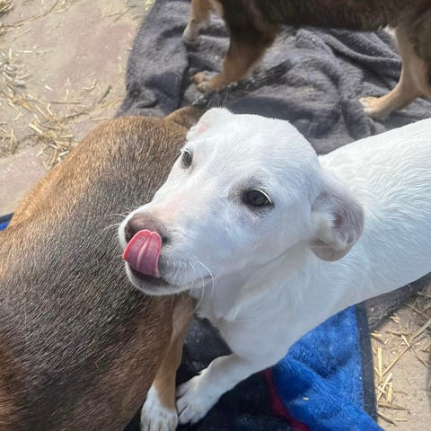 Hun er meget den der der lejer med alle hunde og hanhund og hun er en lille putter makker og vi har service bogen og hun er en god hund og renlig hund hun har aldrig lavet noget har ved os