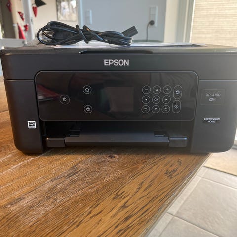 Epson Expression Home XP-4100 multifunktionsprinter i sort farve. Printeren har funktioner til print, scanning og kopiering. Den er kompakt og egnet til hjemmebrug eller små kontorer. Modellen understøtter trådløs tilslutning og har en brugervenlig kontrolpanel med display.