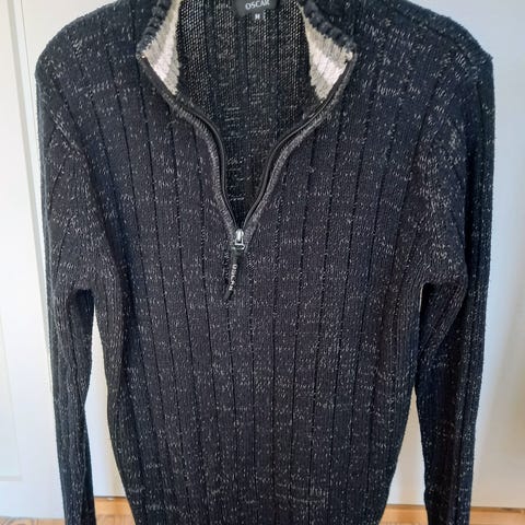 Sweater, Oscar strik-trøje, str. 44, sort/hvid/beige, Næsten som ny, ( pæn og velholdt, str. XXL )