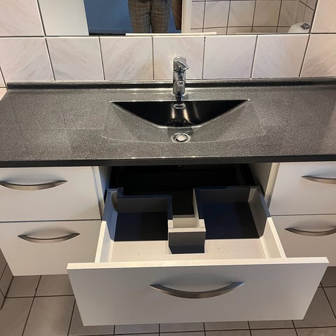 First Floor CPH (Nobell) badserie i pulverlakeret rustfrit stål. Sorte/Matsort. Æstetisk badeværelsesserie. Robuste og vejer en del.