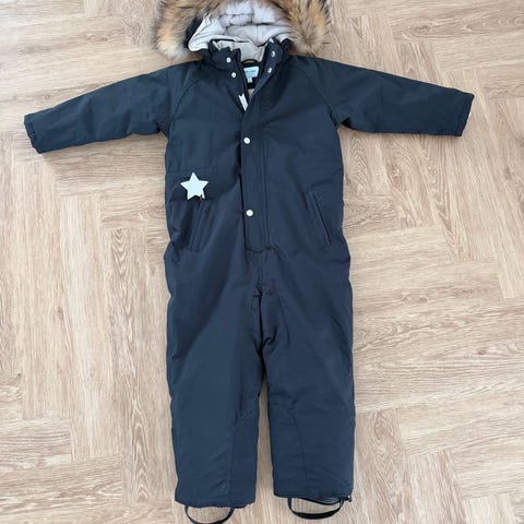Slid på knæ og mangler en trykknap. Se billeder. Har ikke stropper til under fødderne.