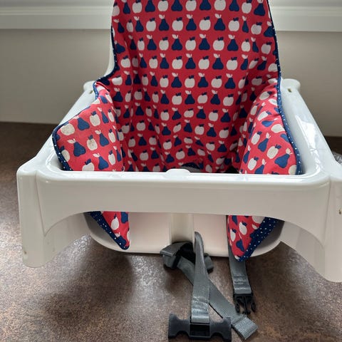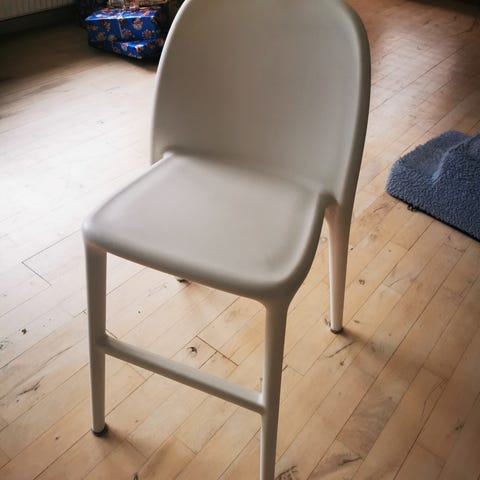 IKEA Urban højstol til børn i hvid farve. Fremstillet af holdbare materialer med et design, der passer til børns brug. Egnet til brug ved spisebordet eller som ekstra siddeplads.