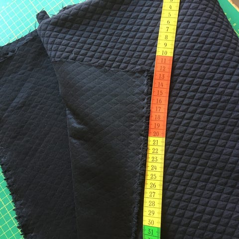Flaskegrøn quilt med rå bagside- farven er ikke helt rigtig på billedet. Lidt velour agtig forside. Isolerings foer/fyld og sort poplin/foer.Kan også afhentes i Tilst