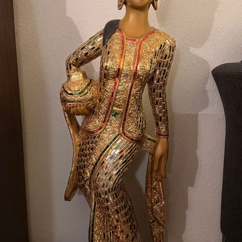 GIV ET BUD - Håndlavet asiatisk dekorationsfigur i træ med guldbelagte detaljer