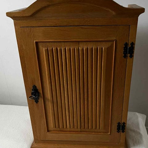 Originalt gammelt hvidmalet træskab til ophæng på væggen.