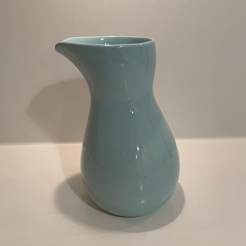 Farven er mørk isblå med svag grønlig kant øverst
