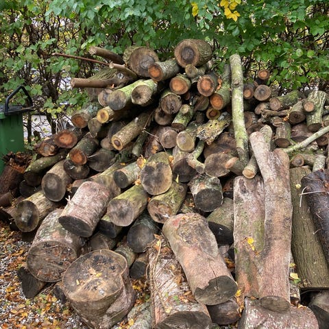 2 år gammelt brænde bestående af blandede træstykker ask og løvtræ til opvarmning og brændeovn. Træet er kløvet - ca. 35 cm. langt og tørret. Egnet til brug som brændsel i hjemmet eller udendørs. Der er ca. 6 rummeter.