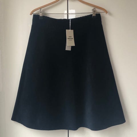 Klassisk sort denim stelly nederdel fra Mads Nørgaard.