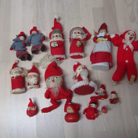 Gamle antikke nisser med julemands kostume og sæk sælges. Nisserne fremstår alle med aldersrelaterede brugsspor. Så mangler du noget nostalgisk julehygge kan du her købe noget af slagsen.