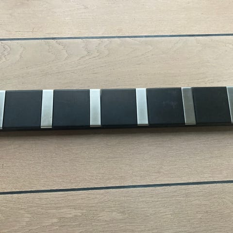 Knagrække i grå med 5 dobbeltknage med sorte hoveder.