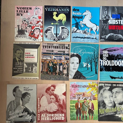 Bøger og blade, Film-hæfter, Sælger et parti af gamle danske film-hæfter. På nogle af dem er der skrevet dato og tid med blyant. De er fra 1950-erne og i rigtig god stand. Nogle af dem er fra kæmpestore internationale film og andre fra danske film. Kan også sælges enkeltvis.