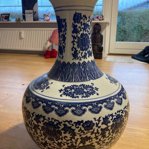 Arabia Valencia keramikvaser i blå og hvid farve. Sættet indeholder fire vaser i forskellige størrelser og former. Vaserne har blomster- og bladdekorationer. Materialet er keramik og porcelæn.