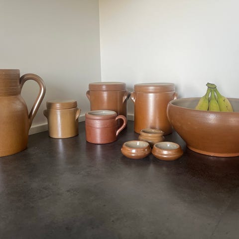 Fransk Stentøj Krukke med Låg og Hanke Hvid