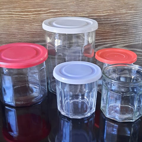 3 stk med metallåg - sandsynligvis fra Føtex.