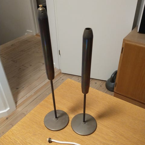 Johgus olielamper 468/1 blå 15 cm lang, lille afslag på fod, 468/0 rød 12 cm, lille afslag på tud. 2 stk 50kr