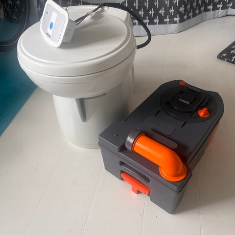 Helt nyt toilet - aldrig brugt - taget ud af helt ny autocamper fordi vi har fået installeret andet toilet. Kassette, betjening panel + kemi medfølger.