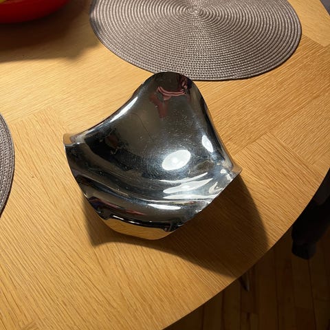 Georg Jensen stel skål fremstillet i rustfrit stål med en moderne, bølget form. Skålen kan anvendes til servering eller som dekorativ genstand i hjemmet.
