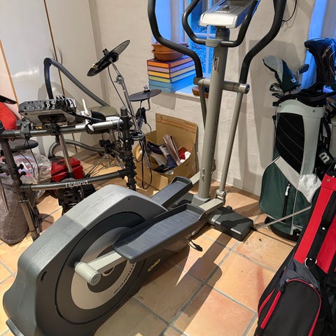 Tunturi FitCross 150i Crosstrainer med digitalt display og Bluetooth-forbindelse. Udstyret med flere træningsprogrammer og justerbare modstandsniveauer. Designet til hjemmebrug med et kompakt og stabilt stel. Sort farve og robust konstruktion.