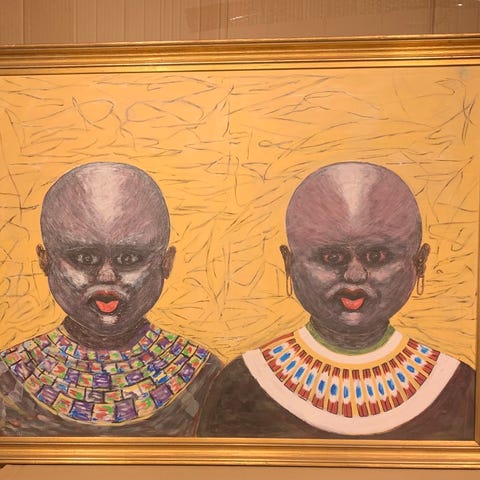 Maleri af kvinde i traditionelt tøj med hvid ramme