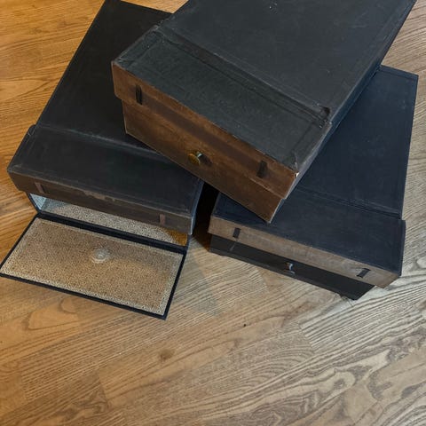 retro arkivkasser i brun og sort