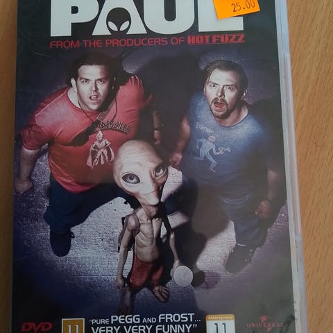 Paul DVD Science Fiction Film. Inkluderer scener med to mænd og en alien figur. Oplysninger om filmens indhold og karakterer findes på bagsiden af coveret. Produktet er tiltænkt voksne seere.
