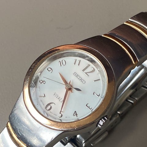 Seiko Kvinde armbåndsur med stållænke. Uret har en rund urskive med en lys baggrund og guldfarvede markører og visere. Lænken består af sammenflettede led i stål, hvilket giver et robust og klassisk udseende. Uret er designet til kvinder og kombinerer funktionalitet med et tidløst design.