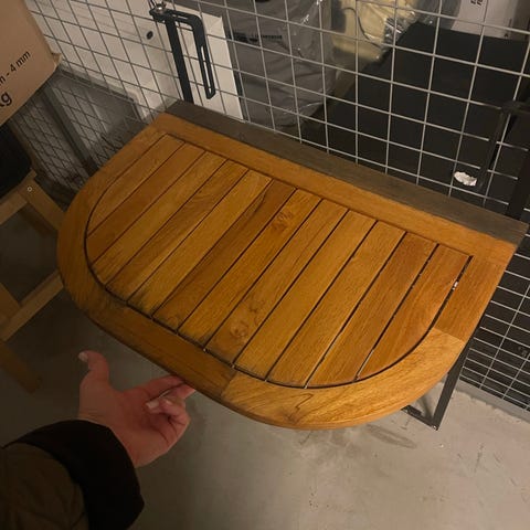 Fint hængebord fra Altanbutikken. Det trænger til at blive slebet og at få olie. Derefter er det så godt som nyt ☺️ jeg plejer at slibe let en gang om året og derefter foliere det, men jeg nåede det ikke i år. Det står inde fra efterår til forår.