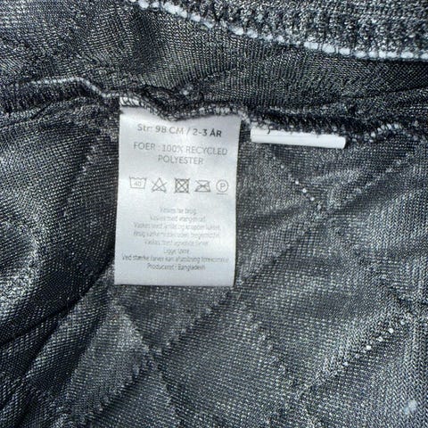 Bukserne er lappet på knæerne med slidstærk materiale.