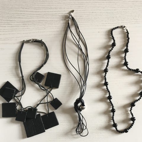 1 stk. med sorte bånd og læderplader i forsk. str. som vedhæng.