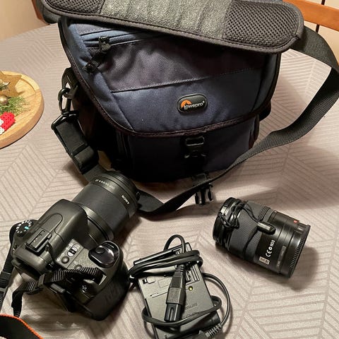 Et digitalt spejlreflekskamera (DSLR) med en 10,2 megapixel APS-C sensor