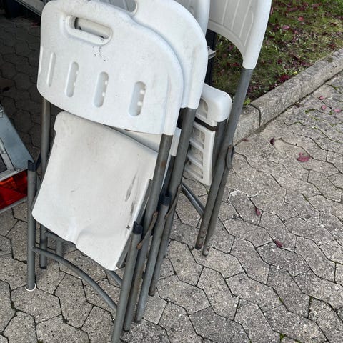 3 hvide klapstole - ukendt mærke - 40kr pr. stk, eller 100kr for dem alle tre.