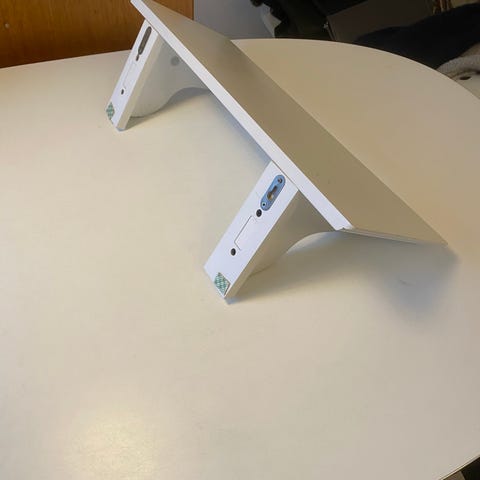 Fin skrivebordshylde som kan spændes fast på kanten af et bord for ekstra opbevaring. Har selv brugt den til opbevaring af fx parfumeflasker, smykkeæsker og pynteting. Sælges da jeg er flyttet og ikke har brug for opbevaringen længere