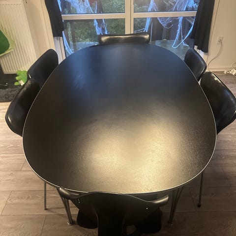 Nydeligt Super Ellipse bord i 180 cm. længde. Design af Piet Hein (1905-1996) & Bruno Mathson (1902-1971) og fremstillet hos Fritz Hansen. Super Ellipse spisebord med bordplade i lysegrå laminat med kant af børstet aluminium, monteret med spændben af forkromet stål. H. 70,5 L. 180 B. 120 cm. Fremstillet hos Fritz Hansen. Kan afhentes i Nyborg på vores adresse, tæt ved motorvejen. Levering til adresse er også mulig, mod betaling. Kontakt mig på mobil 29990387 for nærmere.