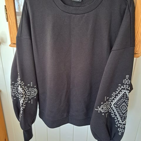 Blå sweatshirt med sorte leopard prikker, let oversize, str M. Fra Soft Gallery
