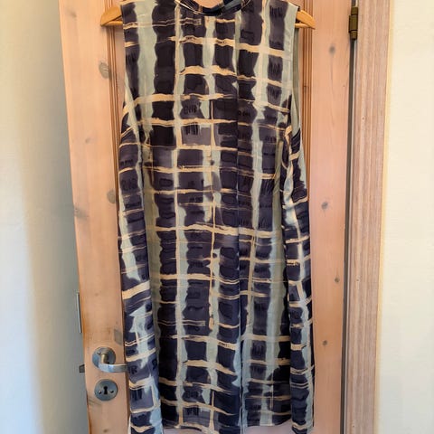H&M Hverdagskjole i størrelse L til kvinder. Kjolen har multifarvet mønster og er velegnet til både fest og hverdagsbrug. Købt men aldrig brugt.